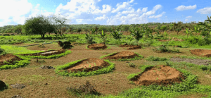 Zum Glück musste er nicht lange nach einer neuen Lösung suchen. Der Landwirt lernte über die Technik der Bunds durch einen von MWCT organisierten Gemeindeeinsatz. Nachdem er mit seinen eigenen Augen sehen konnte, dass die sogenannten “Earth Smiles” degradierte und trockene Landschaften verändern können, entschied er selbst zu graben. Er wandelt den Hof in Wiese um, damit er in Zukunft Vieh halten kann.